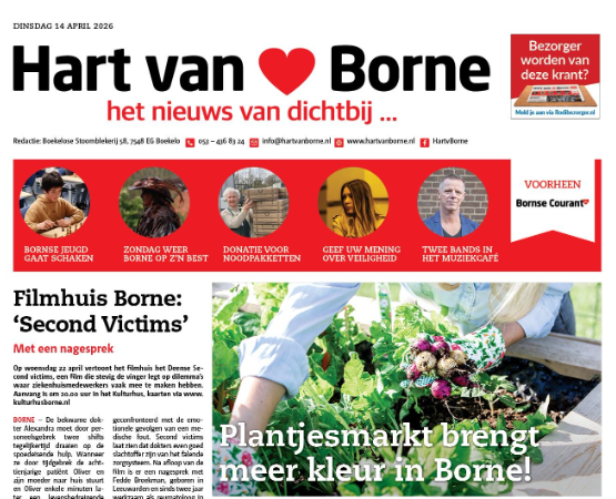 Naast de wekelijkse papieren editie is Hart van Borne ook online actief via hartvanborne.nl en een Facebookpagina. Zo wordt jouw boodschap zowel offline als online verspreid binnen de lokale gemeenschap.